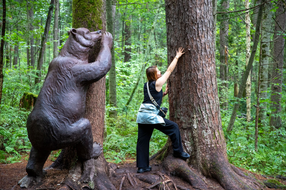 8月27日,游客在黑龍江伊春市上甘嶺溪水國家森林公園內(nèi)拍照。