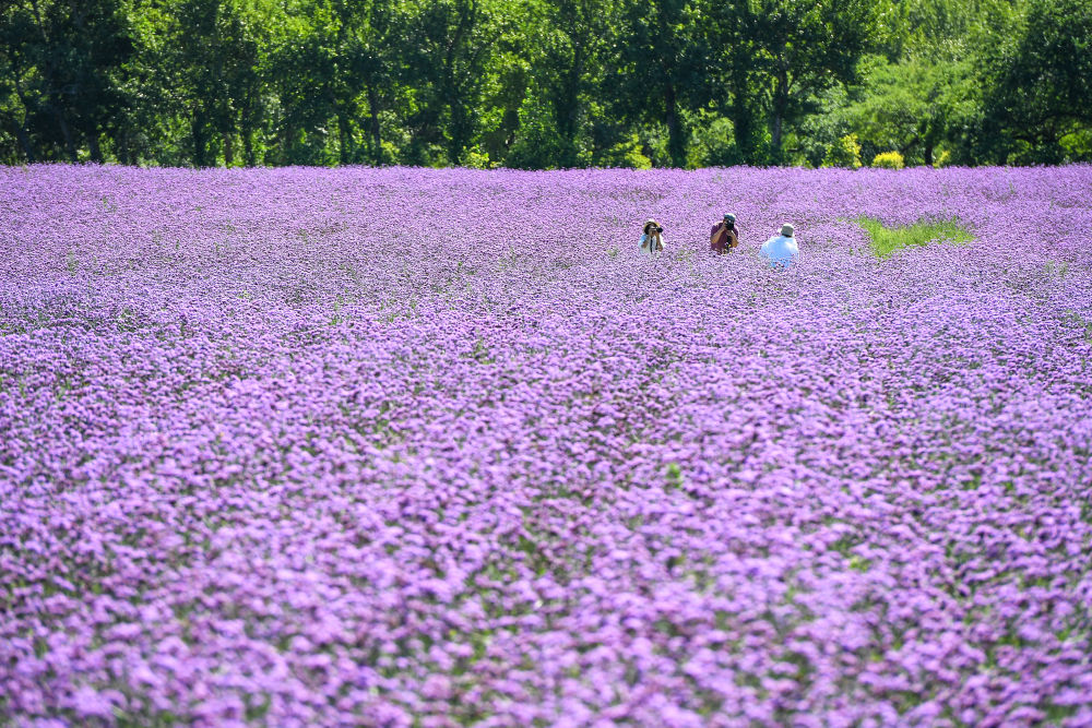 8月26日,游客在吉林省松原市查干湖花海拍照留念。