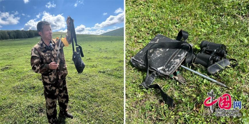 王玉發(fā)放牧巡邊時帶的“裝備包”,里面裝著望遠鏡、錐子、鉗子。中國網(wǎng)記者 吳佳潼 攝
