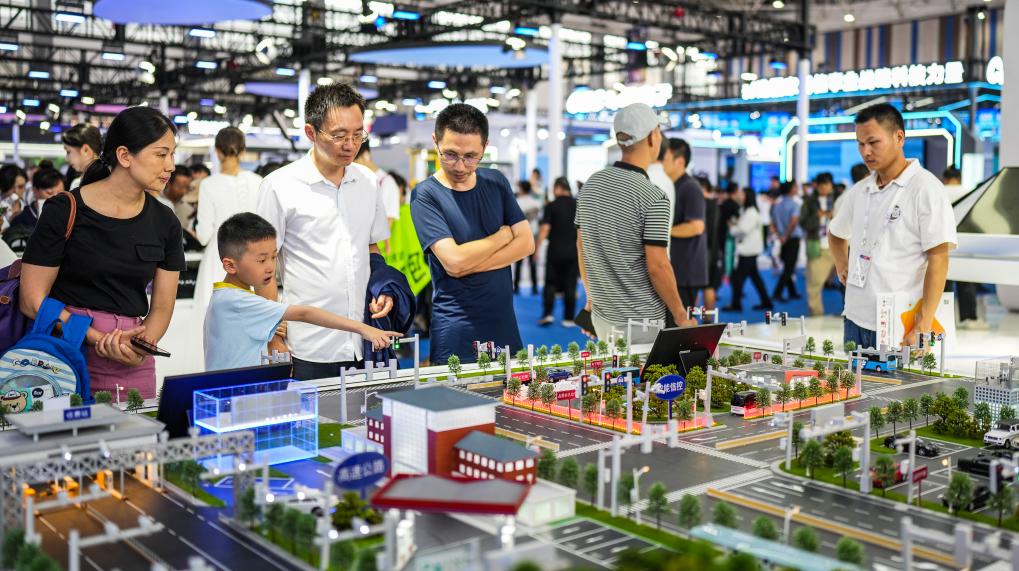 8月28日,觀展者在2024中國國際大數(shù)據(jù)產(chǎn)業(yè)博覽會會場參觀智慧交通系統(tǒng)。新華社記者 陶亮 攝
