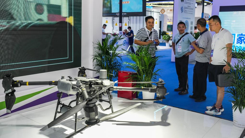 8月28日,觀展者在2024中國國際大數(shù)據(jù)產(chǎn)業(yè)博覽會會場參觀新型智能無人機。 新華社記者 陶亮 攝