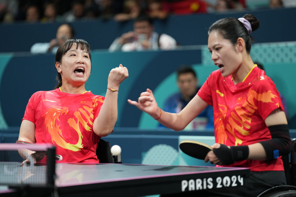 女雙14級決賽上,19歲的黃文娟搭檔16歲的金芋成,以3:1戰(zhàn)勝德國組合格雷貝/沃爾夫,贏得本屆殘奧會乒乓球首金。隨后的女雙5級決賽,36歲的劉靜搭檔34歲的薛娟,以3:1擊敗韓國組合徐秀妍/尹智裕,為中國隊再添一金。