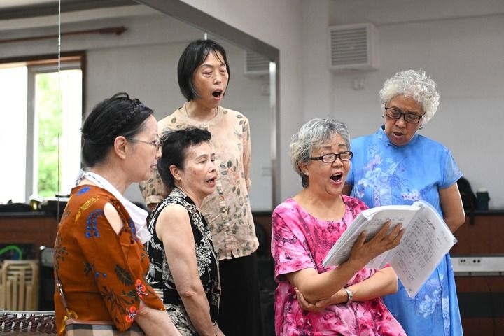 寧夏銀川市金鳳區(qū)長(zhǎng)城花園社區(qū)居民在活動(dòng)室排練節(jié)目(2024年6月20日攝)。新華社記者 毛竹 攝
