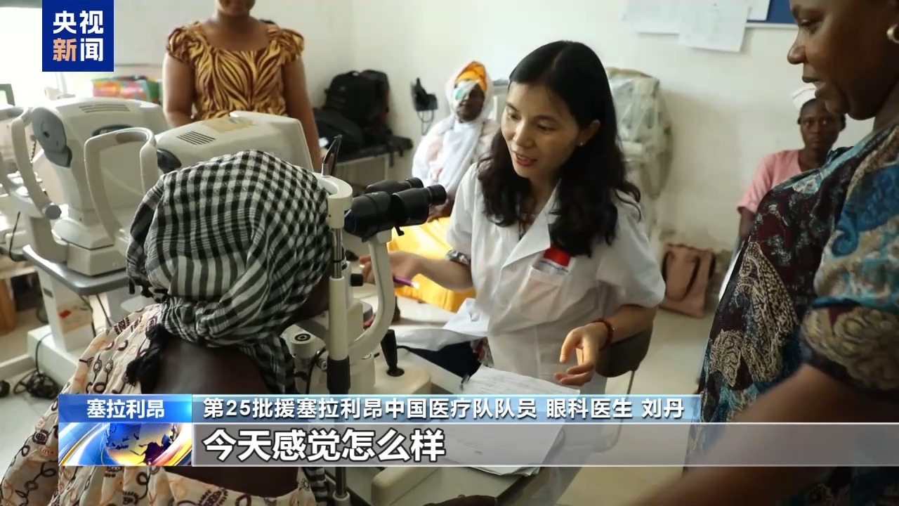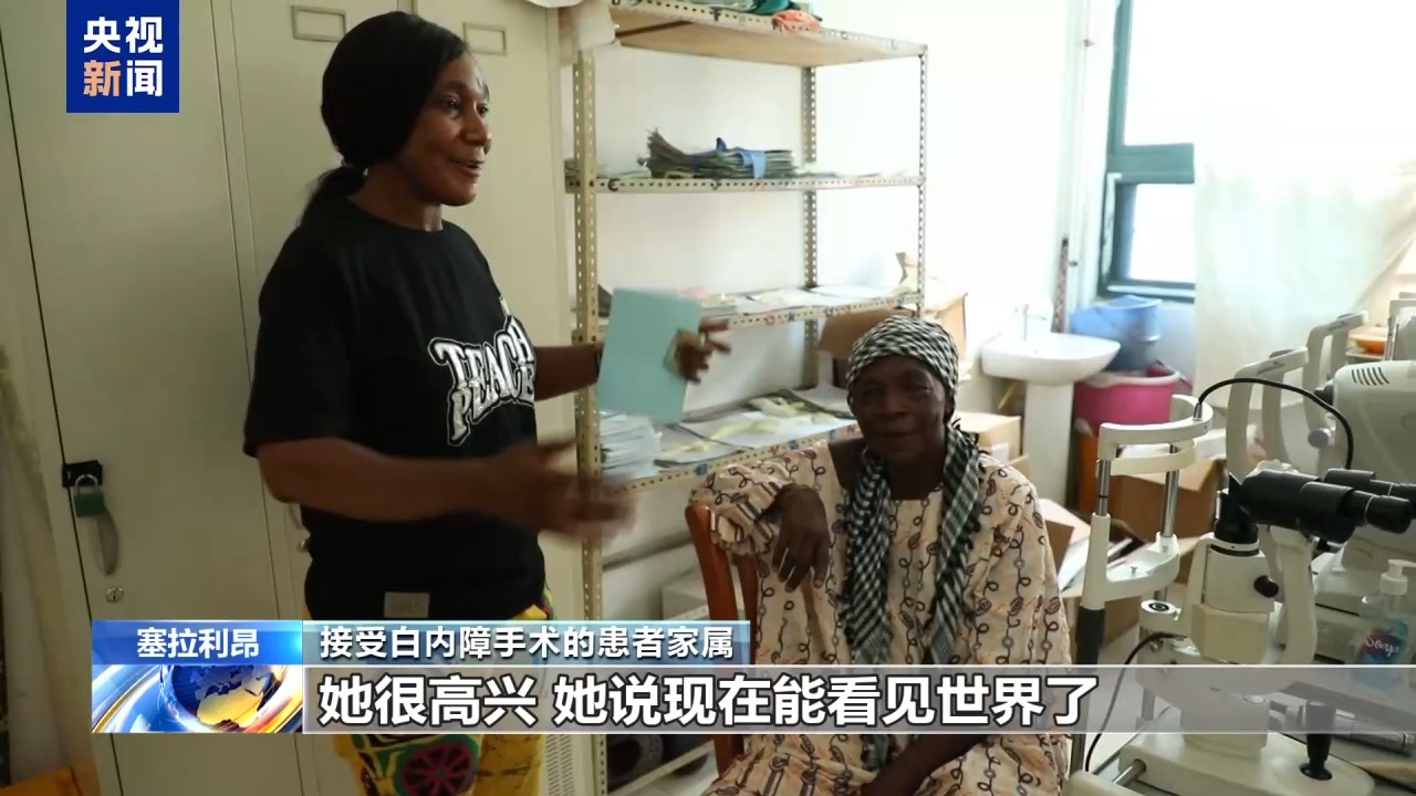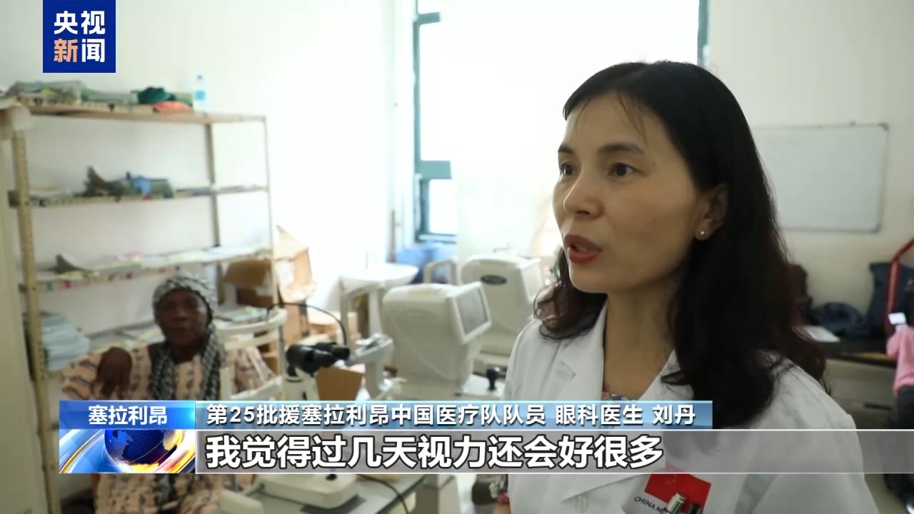 第25批援塞拉利昂中國醫(yī)療隊(duì)隊(duì)員 眼科醫(yī)生 劉丹:這是昨天一個(gè)(接受)白內(nèi)障手術(shù)的病人,她術(shù)前的視力只能看見眼前的手在動(dòng),手指頭都分辨不太清楚。今天一打開(紗布)視力是0.3,我覺得過幾天視力還會好很多。
