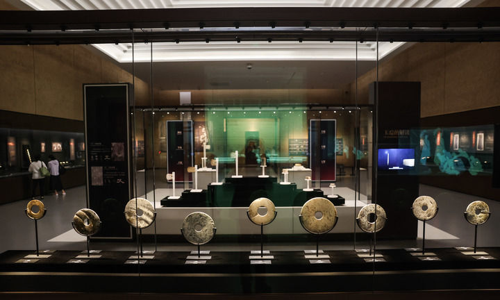 這是良渚博物院內(nèi)展出的良渚遺址發(fā)掘出來的文物(2024年4月18日攝)。 新華社記者 徐昱 攝