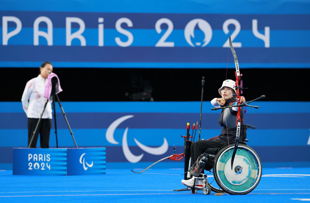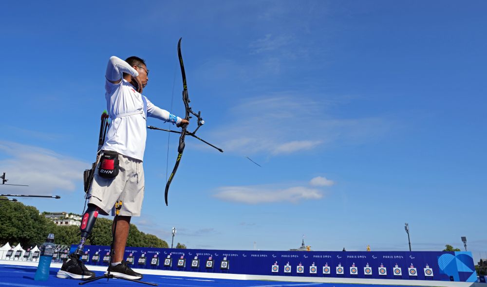5日無緣巴黎殘奧會(huì)混合團(tuán)體反曲弓項(xiàng)目半決賽后,走下賽場的甘俊、吳春艷都有些失落。不過,因?yàn)闊釔?,第一次參加殘奧會(huì)的甘俊表示下次再來;因?yàn)闃s光,新媽媽吳春艷也渴望繼續(xù)征戰(zhàn)。