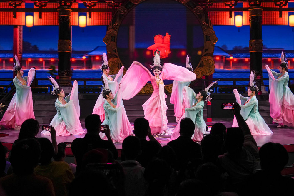 演員在行浸式多維空間劇《只此周莊》中表演(8月27日攝)。