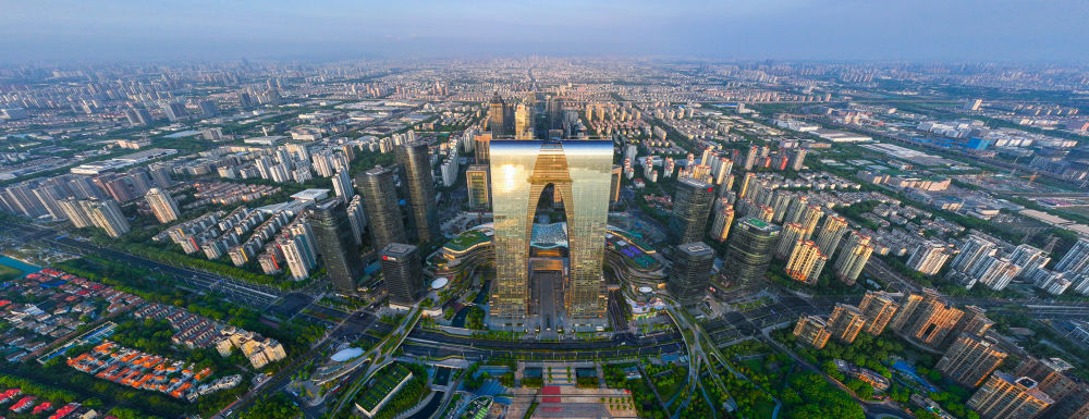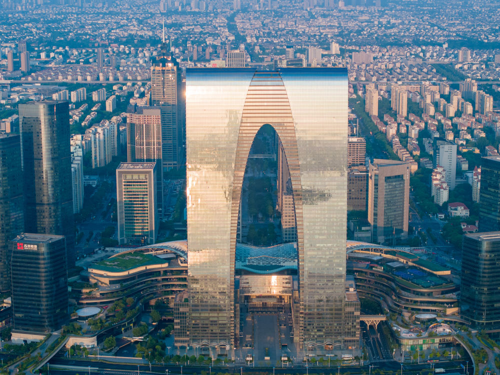這是8月30日無人機拍攝的蘇州工業(yè)園區(qū)東方之門。