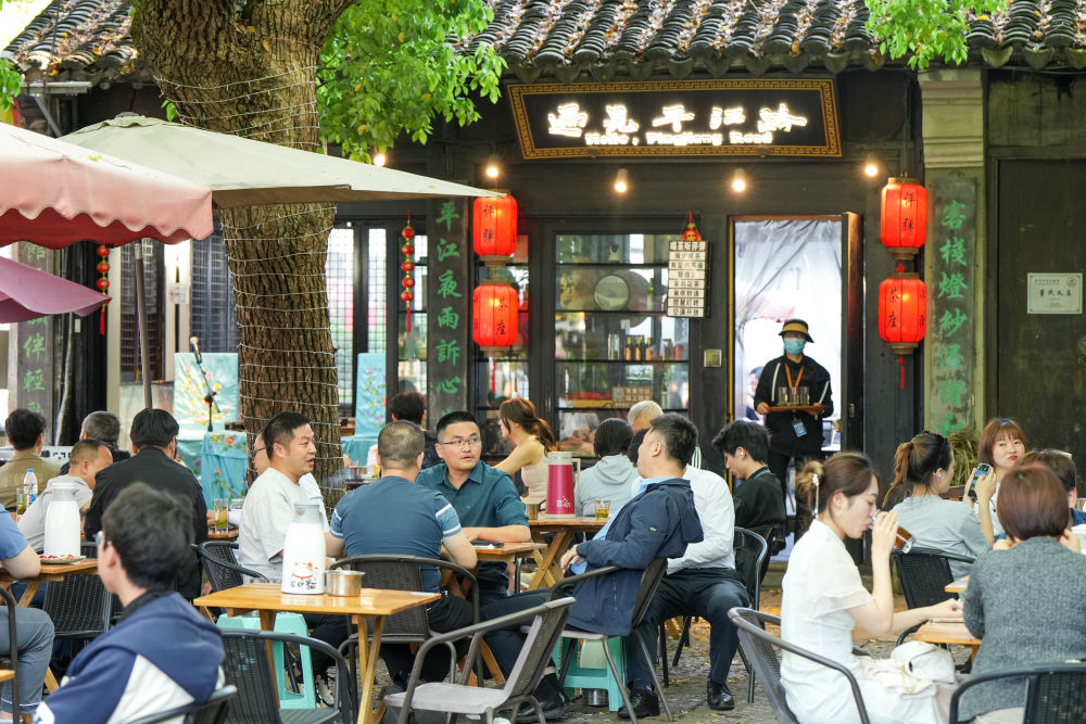 游客在蘇州平江歷史文化街區(qū)休閑游玩(4月18日攝)。