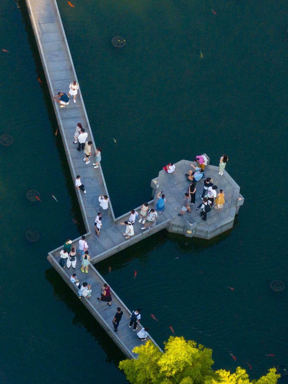 游客在蘇州博物館內的景觀曲橋參觀游玩(8月29日攝)。
