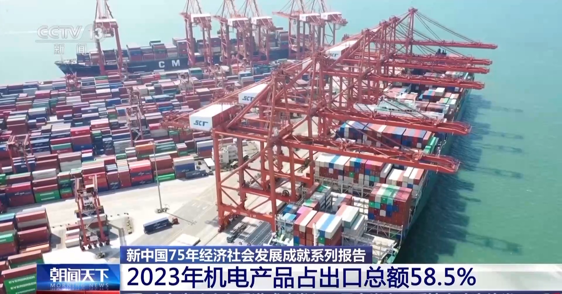 2023年,機(jī)電產(chǎn)品在出口總額中占比達(dá)58.5%,其中,汽車出口522萬(wàn)輛,我國(guó)首次成為全球第一大汽車出口國(guó)。