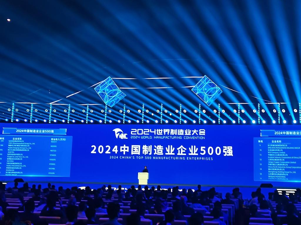 9月20日在安徽省合肥市召開的2024世界制造業(yè)大會上,“2024中國制造業(yè)企業(yè)500強(qiáng)”榜單發(fā)布。新華社記者 胡銳 攝