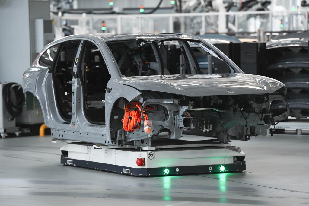 這是在安徽省合肥市新橋智能電動汽車產(chǎn)業(yè)園蔚來第二工廠拍攝的新能源汽車生產(chǎn)線(2024年5月9日攝)。新華社記者 張端 攝