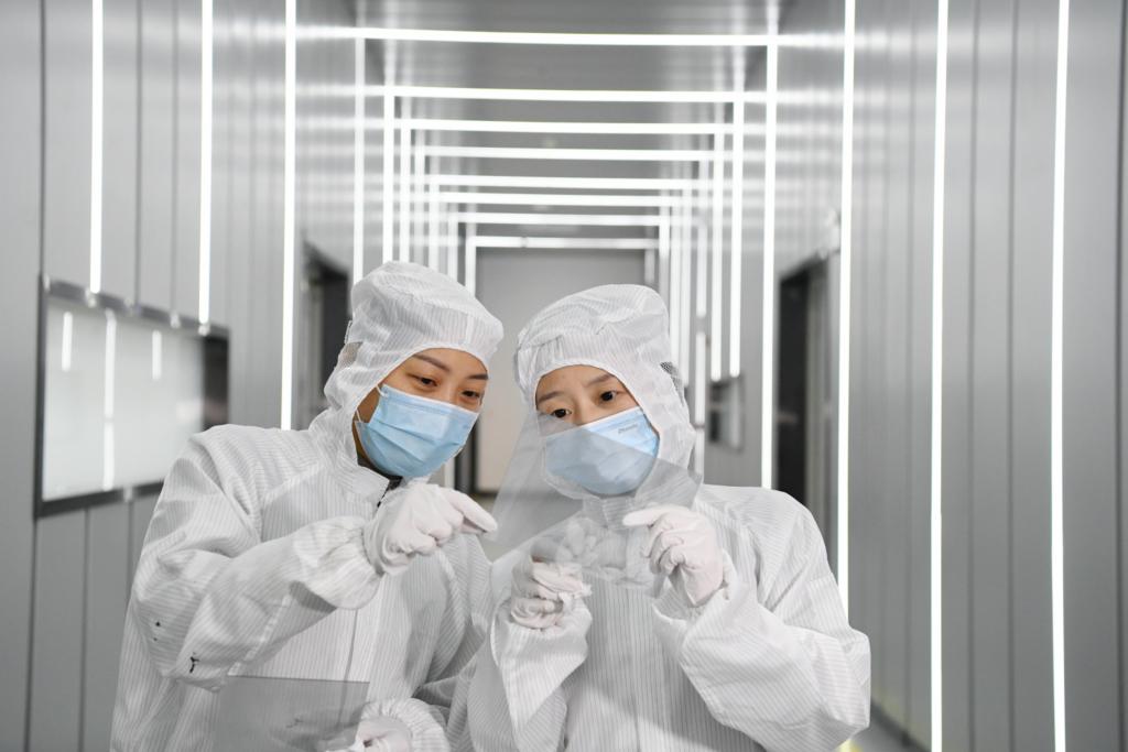 2月21日,在位于安徽合肥的東超科技工廠,技術(shù)人員在檢查負(fù)折射平板透鏡原材料的品質(zhì)。新華社記者 張端 攝