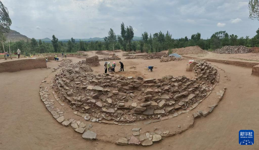 元寶山積石冢遺址發(fā)掘全景(資料照片)。新華社發(fā)