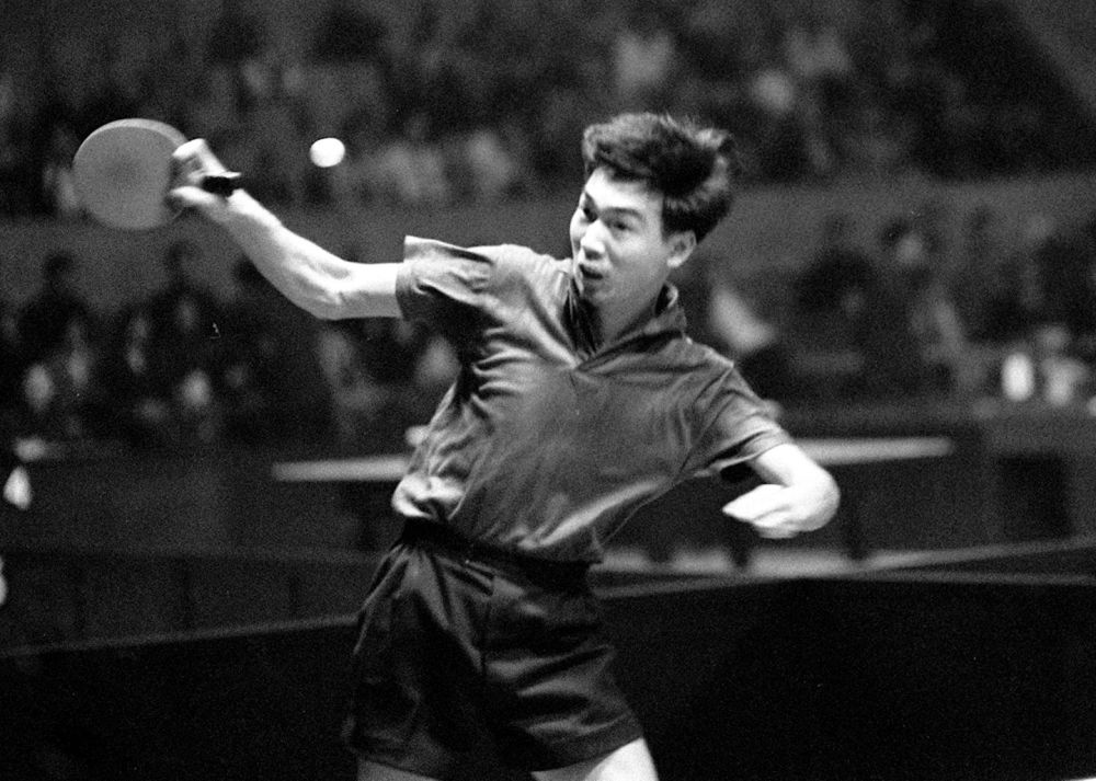 這是1961年4月11日,中國(guó)選手張燮林在第26屆世界乒乓球錦標(biāo)賽單項(xiàng)比賽中。新華社記者 鄒健東 攝