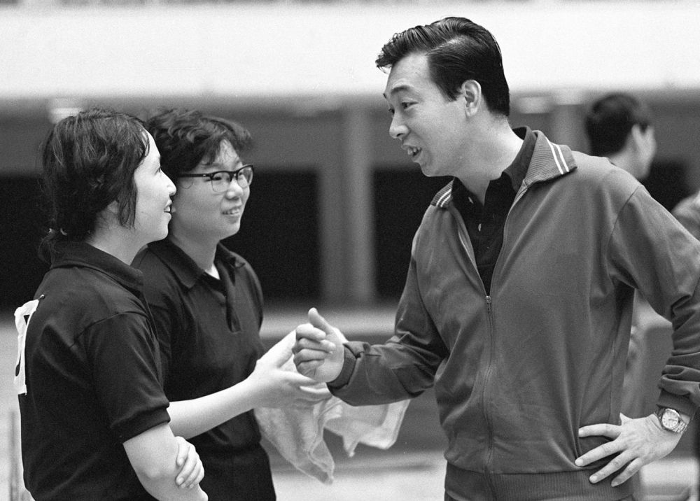 這是張燮林(右)在第35屆世界乒乓球錦標(biāo)賽女子雙打比賽中指導(dǎo)葛新愛(ài)、閻桂麗(資料照片)。新華社記者 胡偉 攝