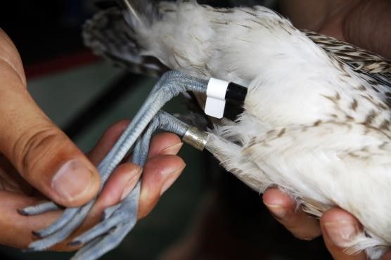 環(huán)志,簡(jiǎn)單說(shuō)就是給鳥“上身份”——在鳥腿上佩戴刻有唯一編碼和中國(guó)鳥類環(huán)志中心地址的金屬環(huán),有時(shí)還佩戴彩色塑料旗標(biāo)或塑料環(huán)?!巴ㄟ^(guò)環(huán)志可以得知鳥的基本信息、遷徙規(guī)律,包括年齡、繁殖地、越冬地、飛行途中在哪里停歇等?!眳俏≌f(shuō)。