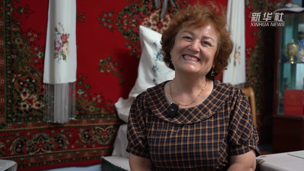 一頭金黃卷發(fā)、一雙深邃的藍(lán)眼睛,這位年過六旬的塔塔爾族婦女再屯娜·卡利穆瓦被大家親切地稱為“洋”婆婆。