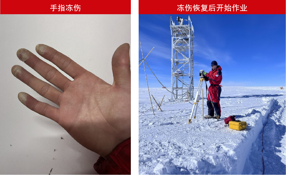 真正到了南極,他也親身體會了這些生死挑戰(zhàn)。在剛剛抵達昆侖站開展作業(yè)的過程中,因為需要點觸手機屏幕,不能穿戴厚手套,超過零下30度的極寒凍傷了他的手指,隨隊醫(yī)生診斷說再嚴重下去可能會有截肢的風險。“我難道我就這樣無法完成這次的任務了嗎?”在耿通強烈地請求下,醫(yī)生為他做了引流治療,傷情才得以好轉。而他也未等手指恢復,便投入到緊張的科研工作中。
