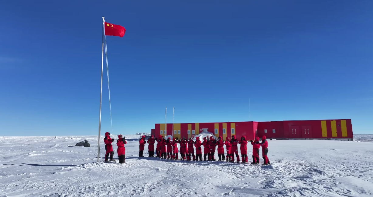 今年元旦當天,隊伍剛抵達昆侖站,耿通申請成為一名升旗手。在隊員們高聲合唱的國歌聲中,親手將一面五星紅旗升起在昆侖站。那一刻,他無比自豪和榮耀:“我的心中又回蕩起習近平總書記的囑托,胸懷國之大者! 勇攀科學高峰!”