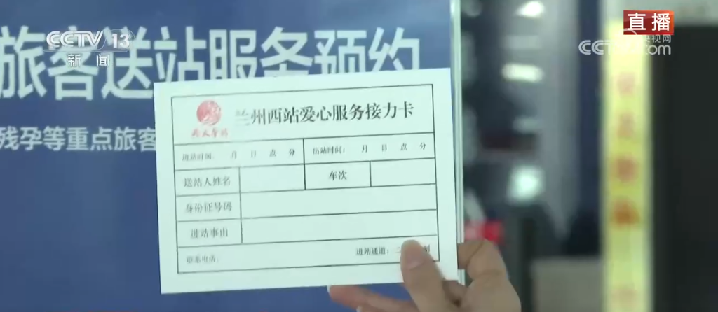 記者手里拿的“愛心服務接力卡”是今年車站升級的服務。針對沒有車票不能接送站的情況,可以在進站口說明情況之后領(lǐng)取“接力卡”作為通行的憑據(jù),在卡片上寫清楚個人信息、聯(lián)系方式和進站事由之后,直接進站接送老幼病殘孕等重點旅客,出站時再把這張接力卡交回工作人員手中,完成閉環(huán)服務。