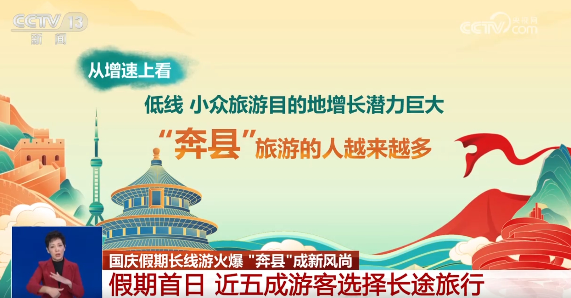 從目的地來看,多家在線旅游平臺(tái)的數(shù)據(jù)顯示,今年國慶假期長線游尤為火爆。國慶假期首日,近五成游客選擇長途旅行。國內(nèi)熱門旅游目的地為北京、成都、上海、重慶、西安、南京、廣州、武漢、長沙和杭州。