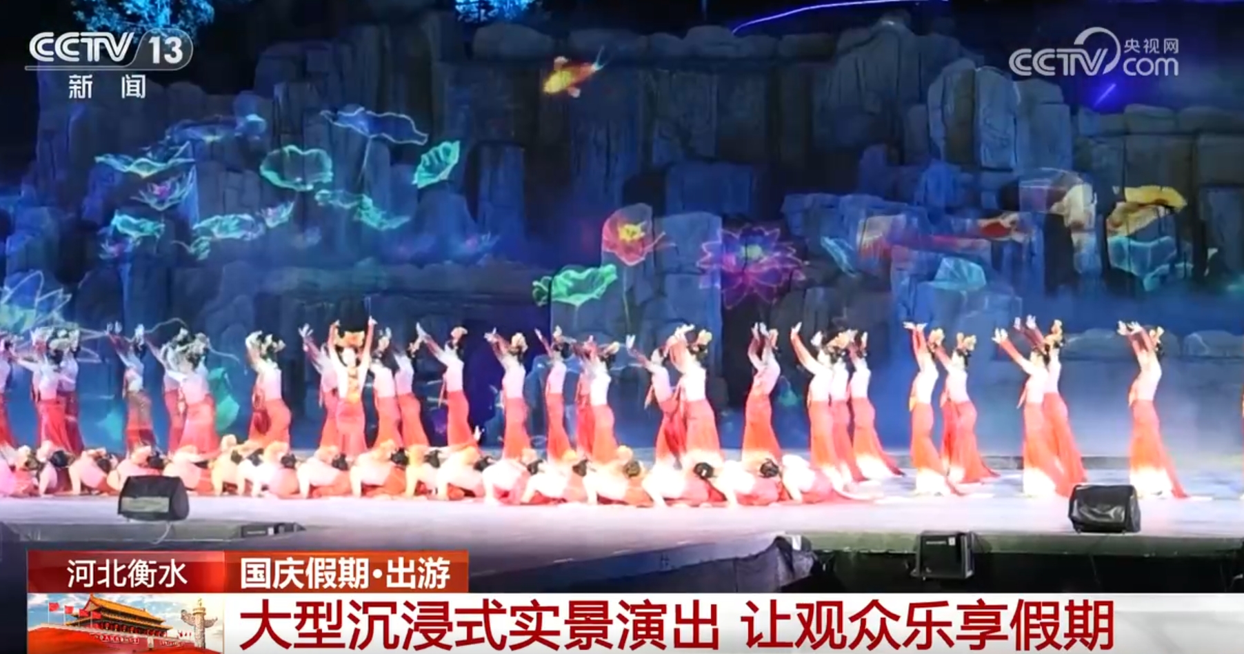 不僅白天能看演出,夜幕降臨后,在河北衡水市,大型沉浸式實景演出《大美衡水 湖韻千年》精彩上演,主舞臺演出以水為脈,通過音、舞、詩、畫巧妙融合,再加上3D投影等特效技術的靈活運用,營造出強烈的視覺效果和藝術沖擊力。