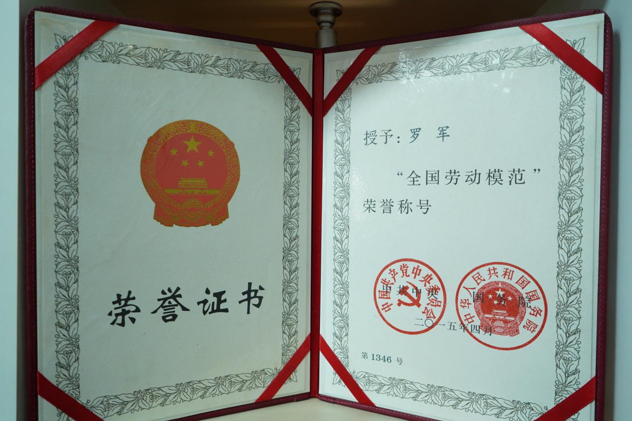 圖為羅軍被授予“全國勞動模范”榮譽稱號的證書。