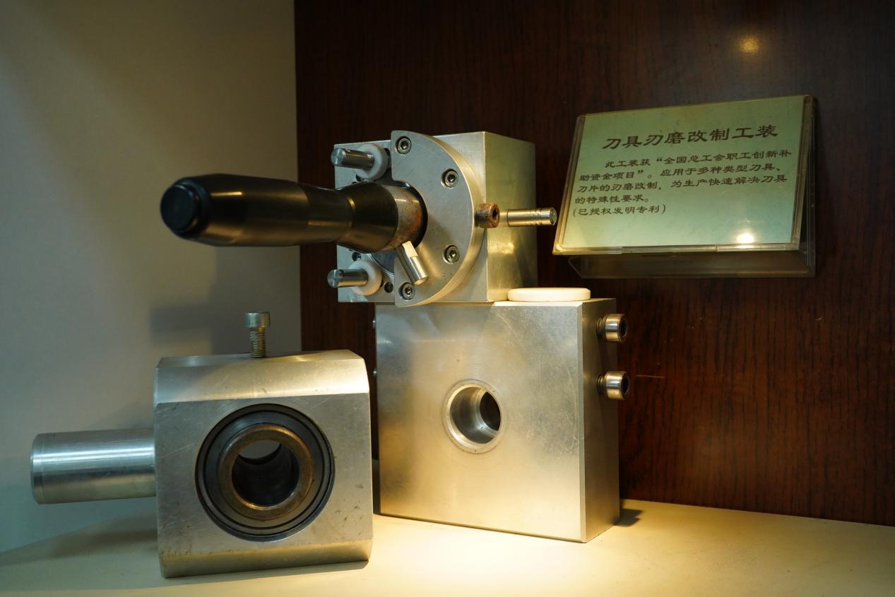 作為工業(yè)機床的“牙齒”,刀具是關(guān)鍵耗材。羅軍注意到,集團每年在刀具上的使用成本高達幾千萬元,刀具損耗的開銷相當(dāng)可觀?!耙话训毒叩某鰪S價格在幾百到上萬元不等,一旦有磨損缺口就不能用了,我當(dāng)時就想為什么不能自己磨來使用呢?”說干就干,幾經(jīng)實踐后,羅軍工作室的團隊成功發(fā)明了一種多功能磨刀裝置,可對廢舊刀具進行二次改制延長刀具使用壽命。