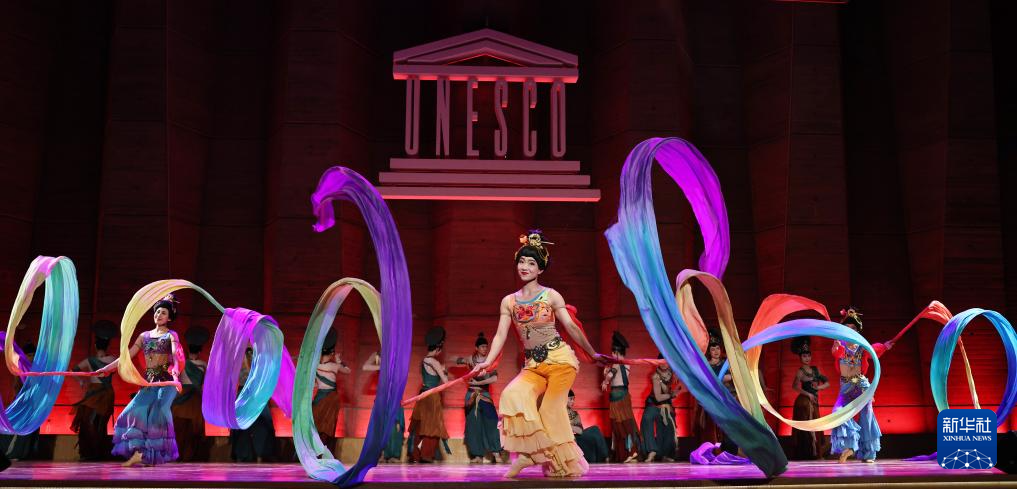 9月24日,在位于法國巴黎的聯(lián)合國教科文組織總部,中國殘疾人藝術團的演員在國慶75周年招待會上表演。新華社記者 高靜 攝