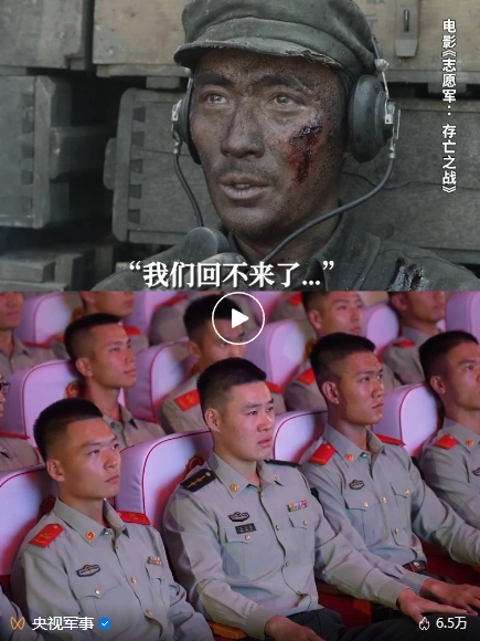 近日,武警北京總隊(duì)機(jī)動(dòng)某支隊(duì)官兵觀看了電影《志愿軍:存亡之戰(zhàn)》。(該支隊(duì)特戰(zhàn)一中隊(duì)前身原隸屬電影中“英雄鐵軍”63軍188師,是這部電影中主要描繪的連隊(duì)原型。)在電影里,63軍188師營(yíng)指導(dǎo)員李想說(shuō)完“一營(yíng)倒下了,我們回不來(lái)了,你們繼續(xù)前進(jìn)”,眼含熱淚的官兵響亮回答:“我們繼續(xù)前進(jìn)!我們繼續(xù)前進(jìn)!我們繼續(xù)前進(jìn)!”這一幕感動(dòng)了眾多網(wǎng)友。