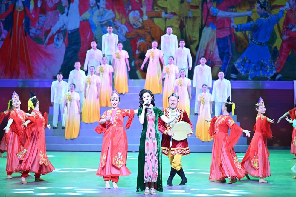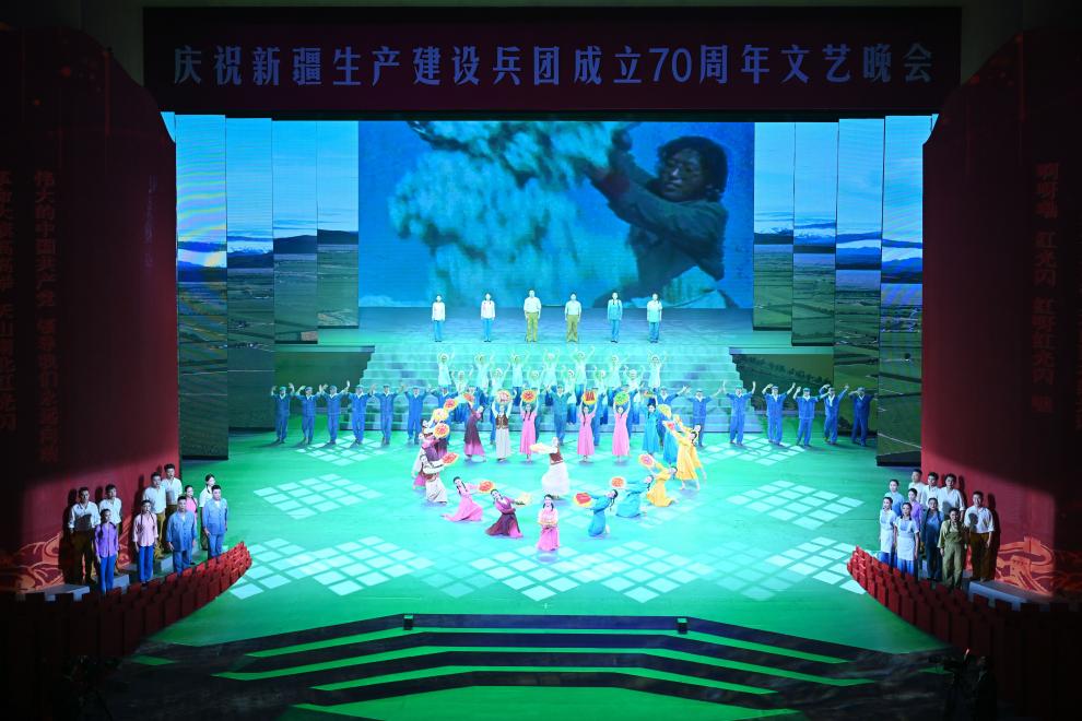 10月6日,慶祝新疆生產(chǎn)建設(shè)兵團(tuán)成立70周年文藝晚會(huì)《光榮使命》在烏魯木齊文化中心大劇院舉行。