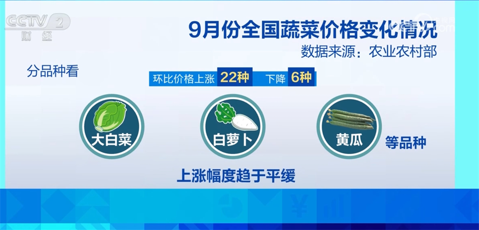 專家表示,9月份全國蔬菜在田面積同比增長1.9%,處于年內(nèi)較高水平,穩(wěn)產(chǎn)基礎(chǔ)好,預計后期蔬菜價格逐步轉(zhuǎn)入季節(jié)性下行。