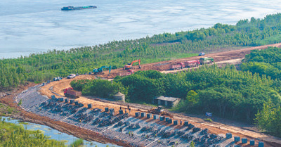 長(zhǎng)江安徽蕪湖段整治工程施工現(xiàn)場(chǎng)。該工程建成后可進(jìn)一步提升防洪能力,改善生態(tài)環(huán)境。肖本祥攝(人民視覺(jué))