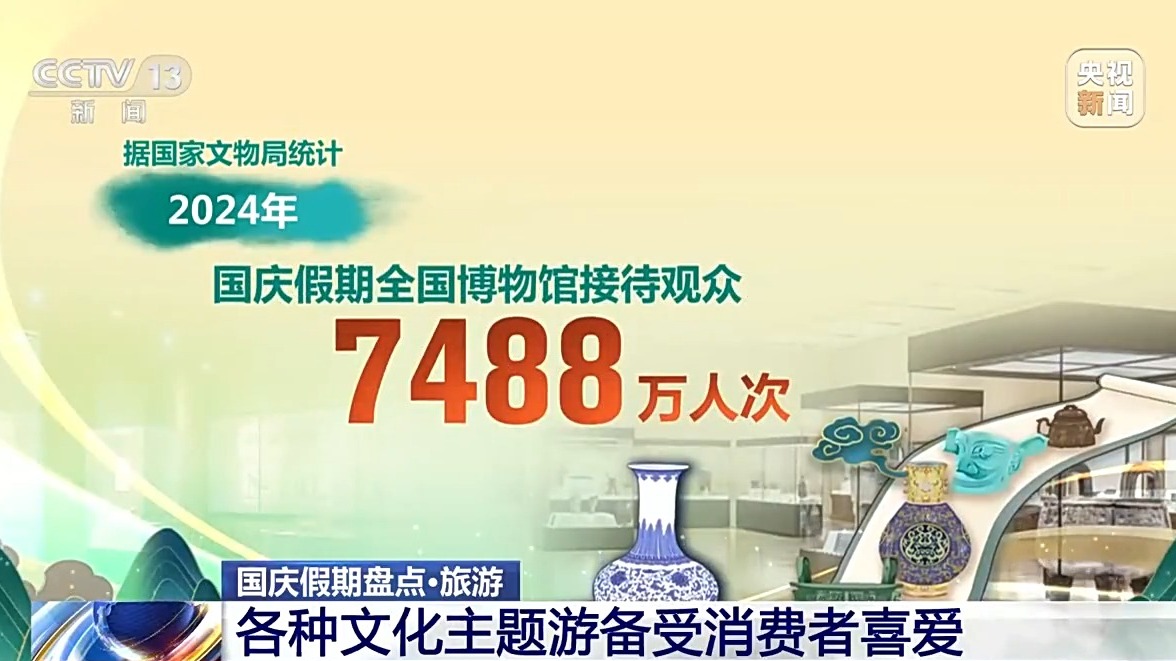 這個(gè)國(guó)慶假期,文物古跡的歷史積淀、古街古鎮(zhèn)的人文魅力、國(guó)潮體驗(yàn)的今昔融合,悠悠文脈為旅行注入靈魂。網(wǎng)絡(luò)數(shù)據(jù)顯示,漢服旅拍、非遺體驗(yàn)、歷史名勝深度游覽等文化主題游備受消費(fèi)者喜愛。據(jù)國(guó)家文物局統(tǒng)計(jì),2024年國(guó)慶假期全國(guó)博物館接待觀眾7488萬人次。