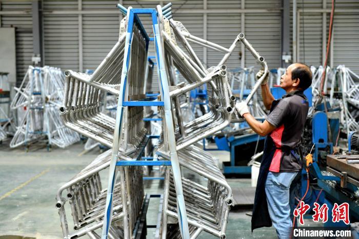 舊鎮(zhèn)工業(yè)園聚集著不少從深圳搬遷而來的臺企,主要生產(chǎn)自行車車架、腳踏板、車鎖、鈴鐺,鋁管等,形成較為完整的自行車產(chǎn)業(yè)鏈。中新網(wǎng)記者呂明 攝