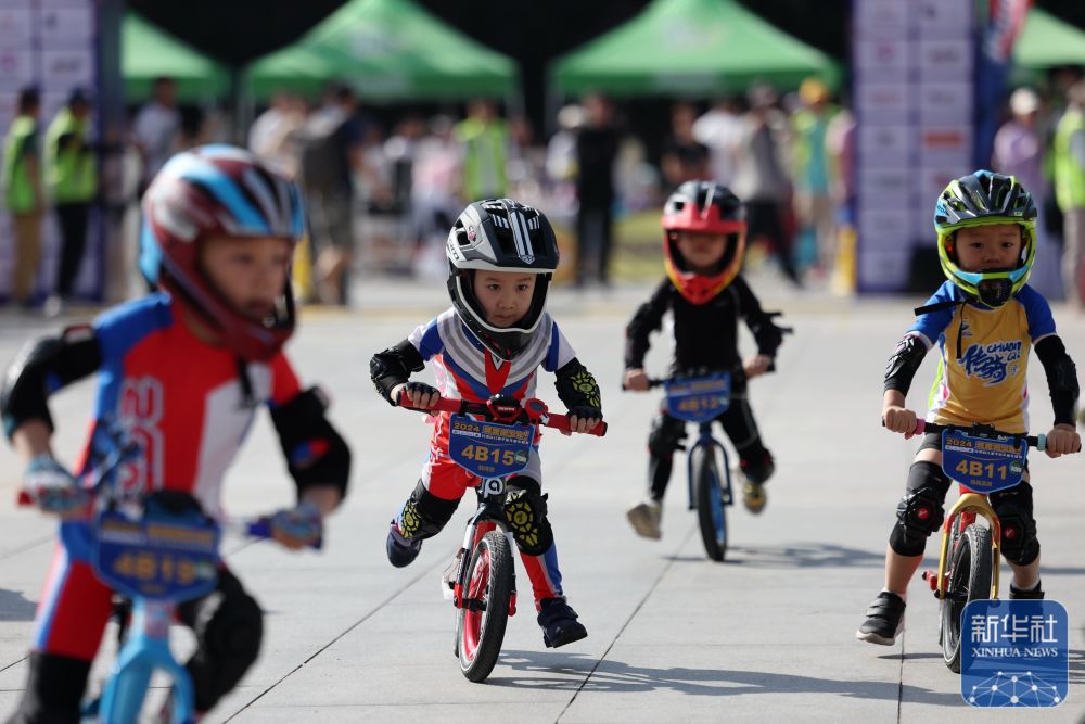 2024年6月22日小選手寒博赟(左二)在比賽中騎行。當(dāng)日,2024甘肅省兒童平衡車童車聯(lián)賽在甘肅省蘭州市甘肅大劇院廣場(chǎng)開(kāi)賽。新華社記者 陳斌 攝