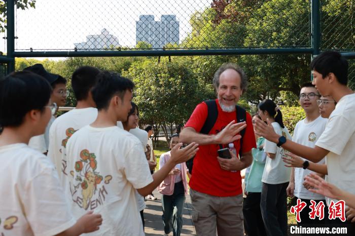 10月11日,辛辛那提—柳州姐妹城市委員會主席約瑟夫與柳州學(xué)生互動。 林馨 攝