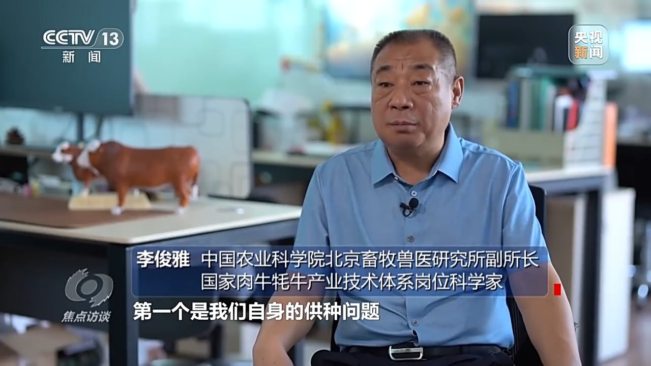 中國農(nóng)業(yè)科學(xué)院北京畜牧獸醫(yī)研究所副所長、國家肉牛牦牛產(chǎn)業(yè)技術(shù)體系崗位科學(xué)家 李俊雅:“核心種源依然依靠進(jìn)口,存在很多問題,一是我們自身的供種問題,在特殊時(shí)期,如果我們不能從國外進(jìn)口相應(yīng)的優(yōu)秀種質(zhì),我該怎么做;另外,我們引的這些國外的品種基本上都不是本品種的最優(yōu)秀種?;蛘叻N牛的凍精。我們必須要培育出滿足我們國家主流市場供給型的品種。