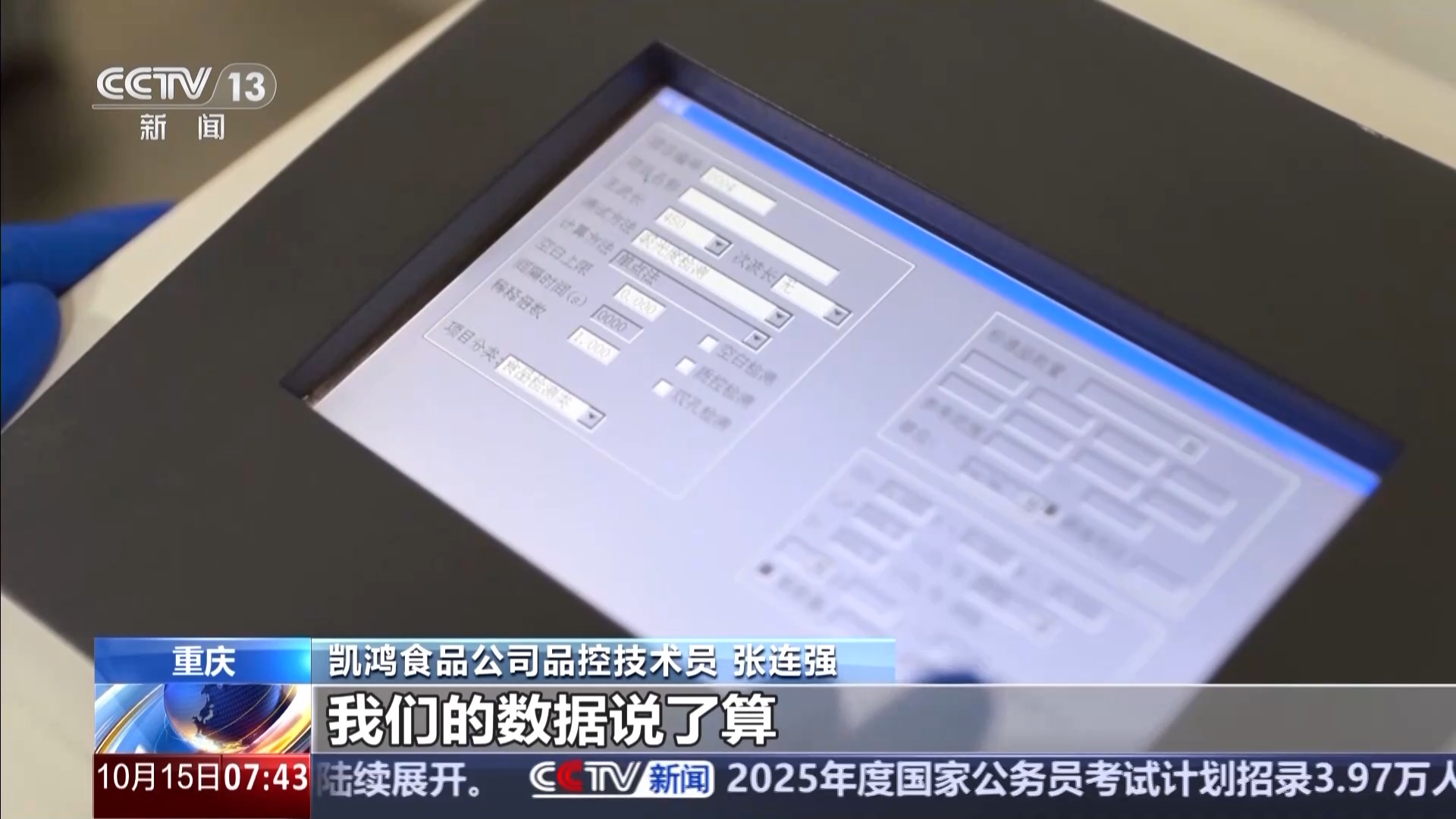 重慶凱鴻食品公司品控技術(shù)員 張連強(qiáng):像牛肉就要檢測(cè)七項(xiàng),比如說里面的過氧化脂,精確到了每百克不得超過0.25克,非常嚴(yán)格。產(chǎn)品好不好,能不能走向市場(chǎng),老板說了不算,我們的數(shù)據(jù)說了算。