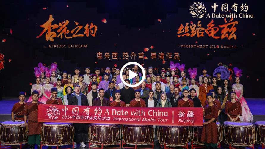 10月22日,“中國有約·相約新疆”2024年國際媒體采訪團走進庫車大馕城。2023年大馕城中廳進行升級改造,修建了大型演藝舞臺,打造一臺以古代龜茲樂舞和當下庫車非遺相融合的樂舞詩劇目。國際媒體采訪團成員在欣賞了精彩的表演之后,走上舞臺與演員們一起上演最炫民族風,感受著千年古城人民的熱情與友好。