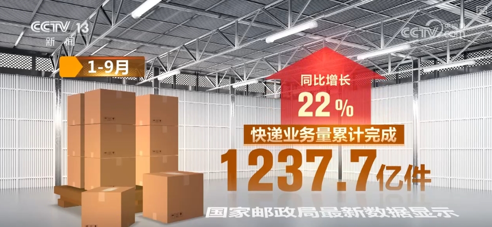 記者從國家郵政局獲悉,前三季度,我國郵政行業(yè)寄遞業(yè)務(wù)量完成1376.7億件,同比增長19.6%。其中,快遞業(yè)務(wù)量累計(jì)完成1237.7億件,同比增長22%。