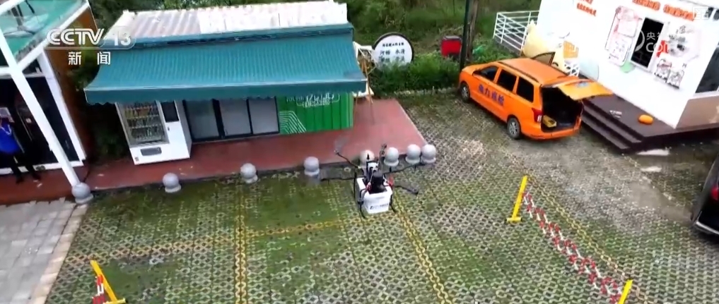 在成都市新都區(qū)的一處快遞分揀中心前,隨著操作人員在控制臺按下指令,載著快遞包裹的無人機(jī)轉(zhuǎn)動(dòng)旋翼、騰空而起,按照設(shè)定航線,飛越17公里的農(nóng)田山林。20分鐘后,無人機(jī)緩緩降落在清流鎮(zhèn)水梨村。住在附近的村民張女士在收到快遞短信后來到快遞驛站,取出了自己的包裹。
