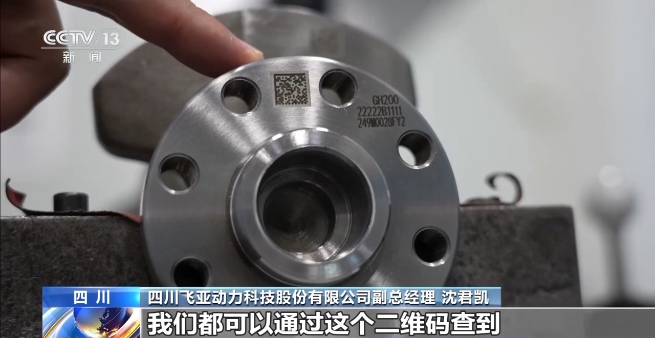 四川飛亞動(dòng)力科技股份有限公司副總經(jīng)理 沈君凱:質(zhì)量的信息、技術(shù)的信息,甚至是當(dāng)天生產(chǎn)產(chǎn)品設(shè)備的整個(gè)機(jī)器的型號(hào)、設(shè)備的狀態(tài),我們都可以通過(guò)這個(gè)二維碼查到。