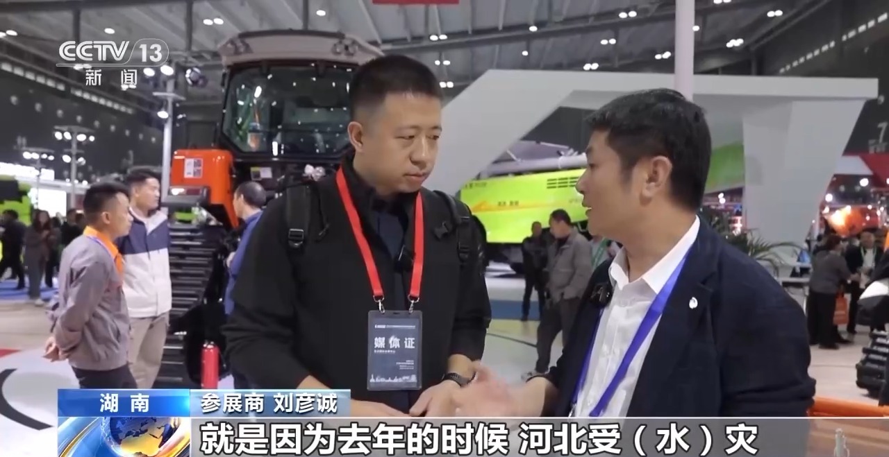 參展商 劉彥誠(chéng):這個(gè)履帶底盤,就是因?yàn)槿ツ旰颖笔芩疄?zāi),很多輪式的玉米收割機(jī)下不了地,干不了活,就委托我們給他們專門研發(fā)這一款履帶底盤。