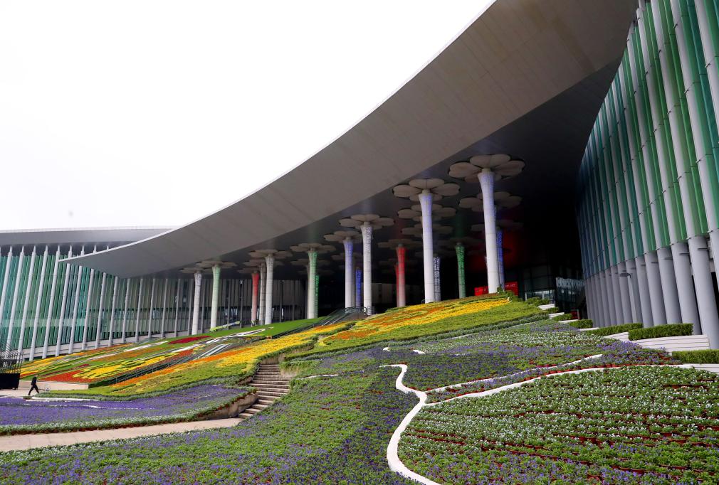 這是10月22日拍攝的國(guó)家會(huì)展中心(上海)南廣場(chǎng)花壇裝飾。新華社記者方喆 攝