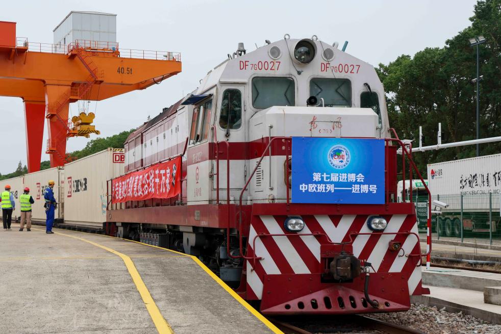 10月20日,首趟“中歐班列——進(jìn)博號(hào)”抵達(dá)上海鐵路物流中心閔行貨場(chǎng)中儲(chǔ)專用線。新華社記者王翔 攝
