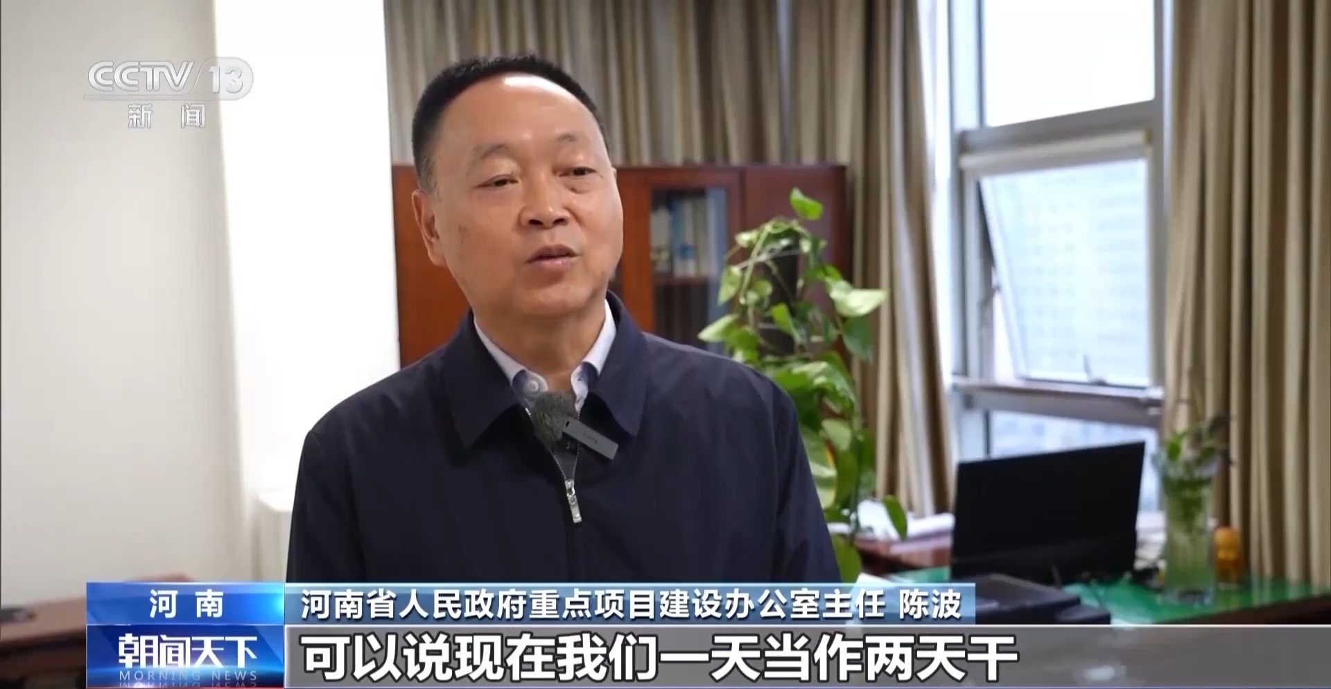 河南省人民政府重點(diǎn)項(xiàng)目建設(shè)辦公室主任 陳波:時間緊任務(wù)重,我們一天當(dāng)做兩天干,項(xiàng)目工作不停轉(zhuǎn),開展全省重大項(xiàng)目集中攻堅(jiān)、現(xiàn)場勘查等一系列活動。