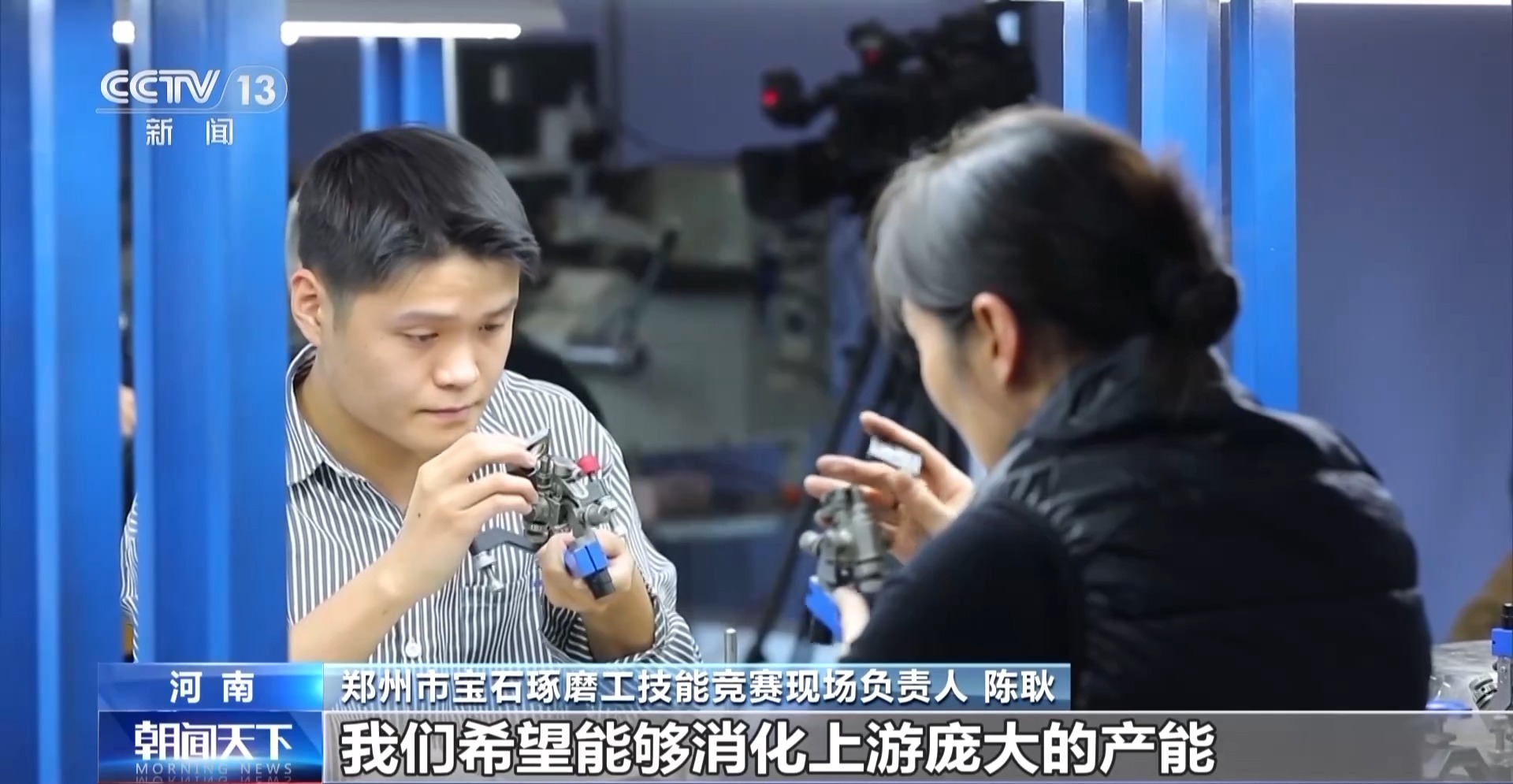 鄭州市寶石琢磨工技能競賽現(xiàn)場負(fù)責(zé)人陳耿告訴記者,通過這個比賽,一方面為了培養(yǎng)產(chǎn)業(yè)工匠、產(chǎn)業(yè)大師;另外一方面,希望能夠消化上游龐大的產(chǎn)能。